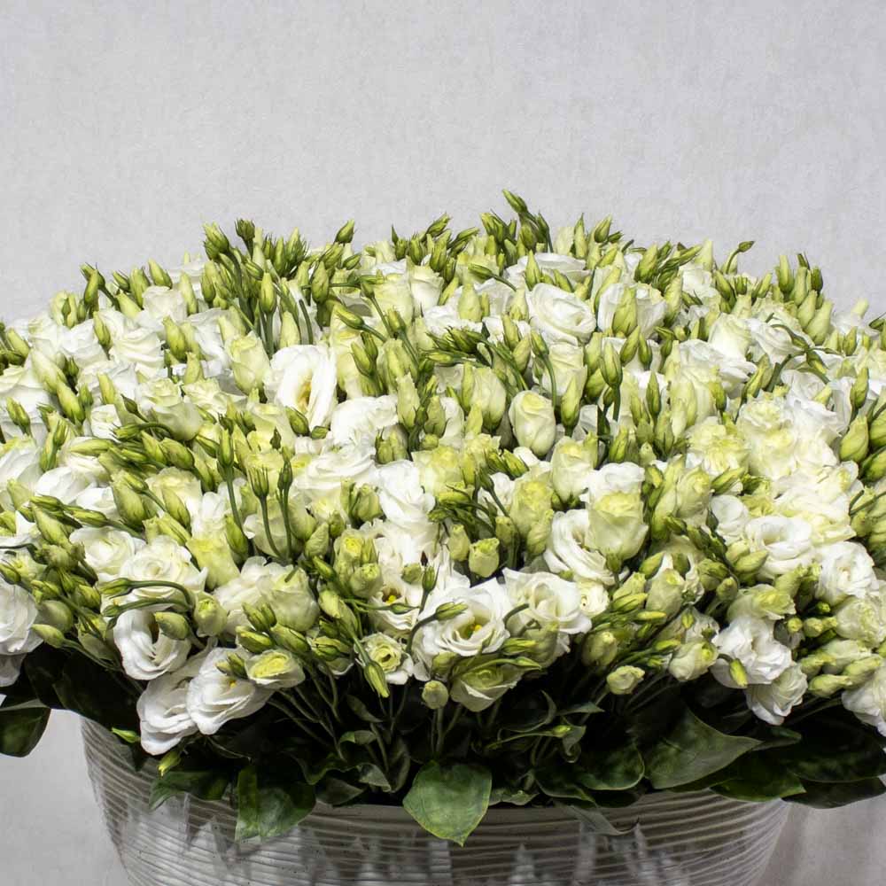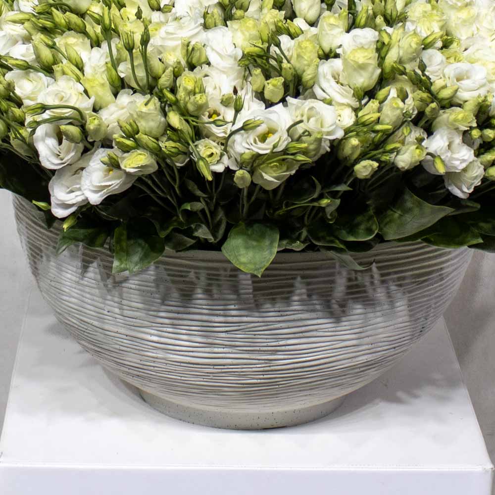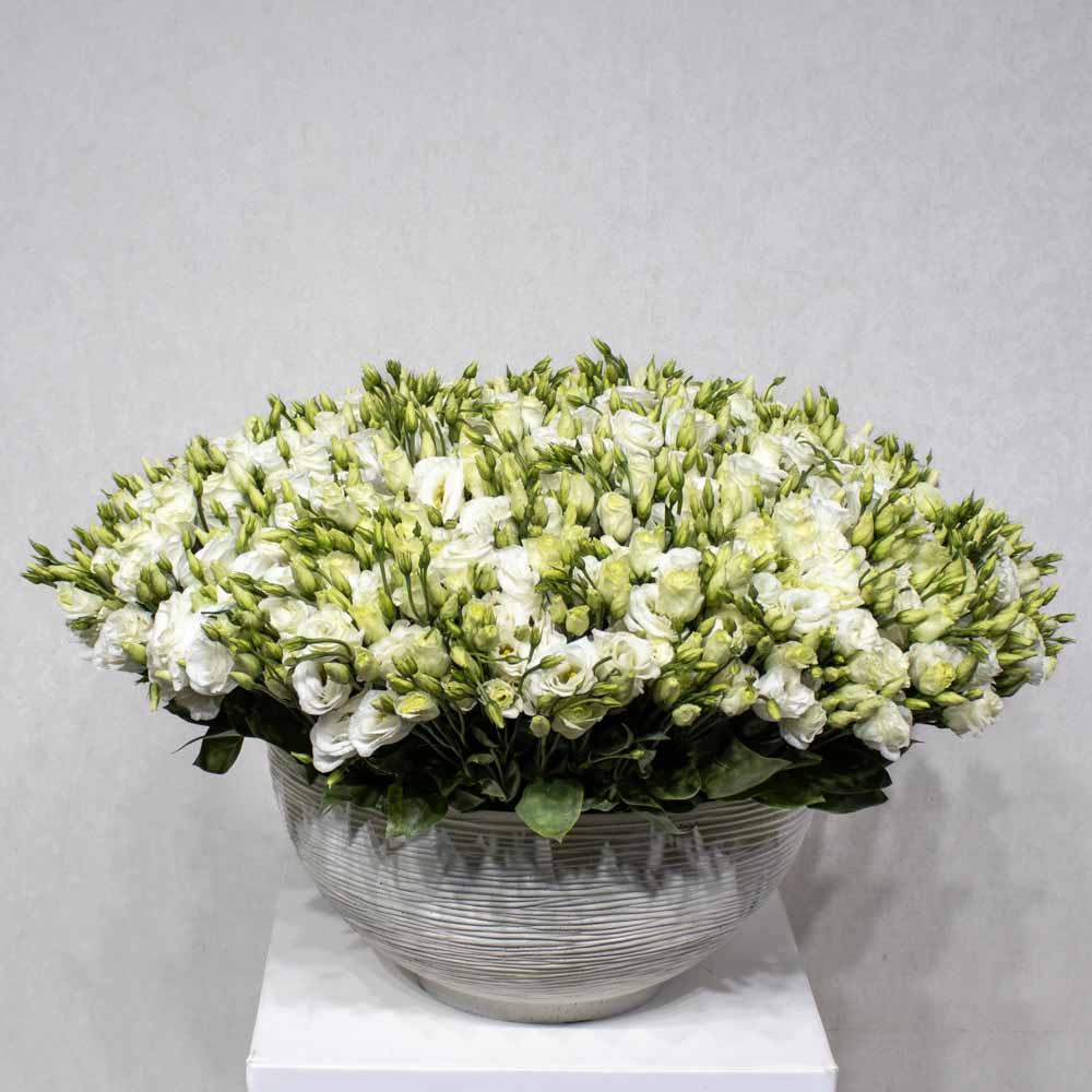 This beautiful vase contain white eustoma.