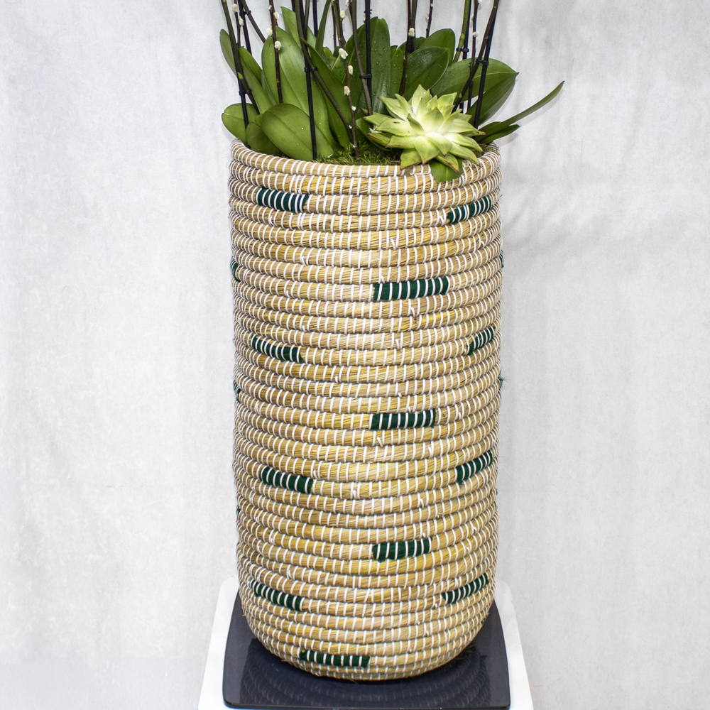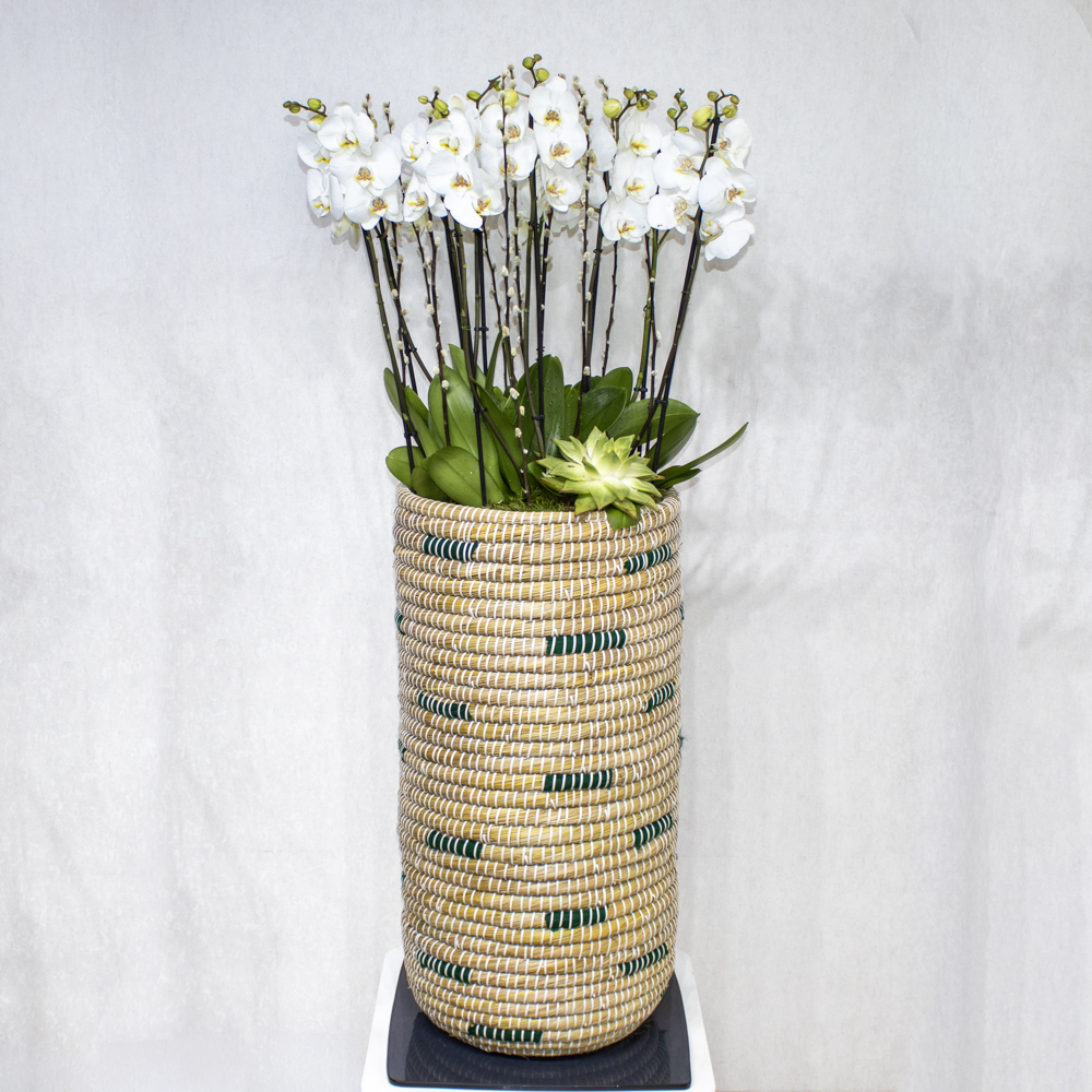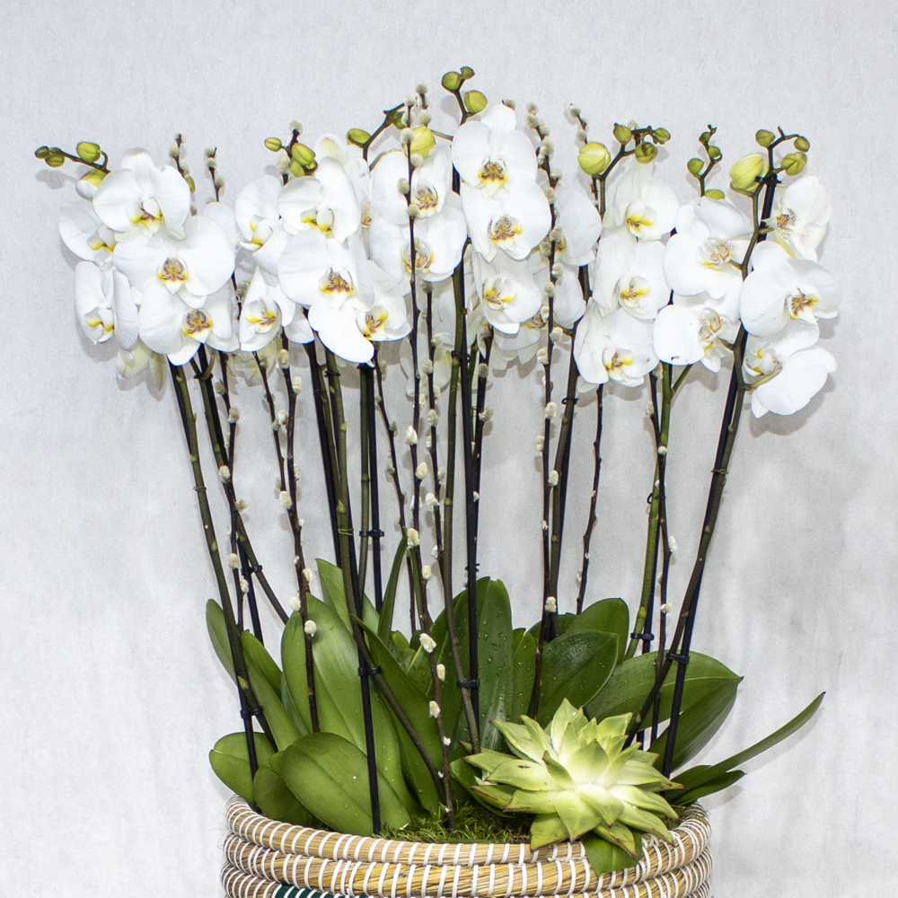 This bouquet contain white orchids beautifully arranged in high vase.