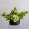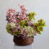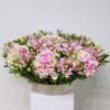 This bouquet contains cymbidiums, hydrangeas, and wax flowers, arranged beautifully in a ceramic vase.