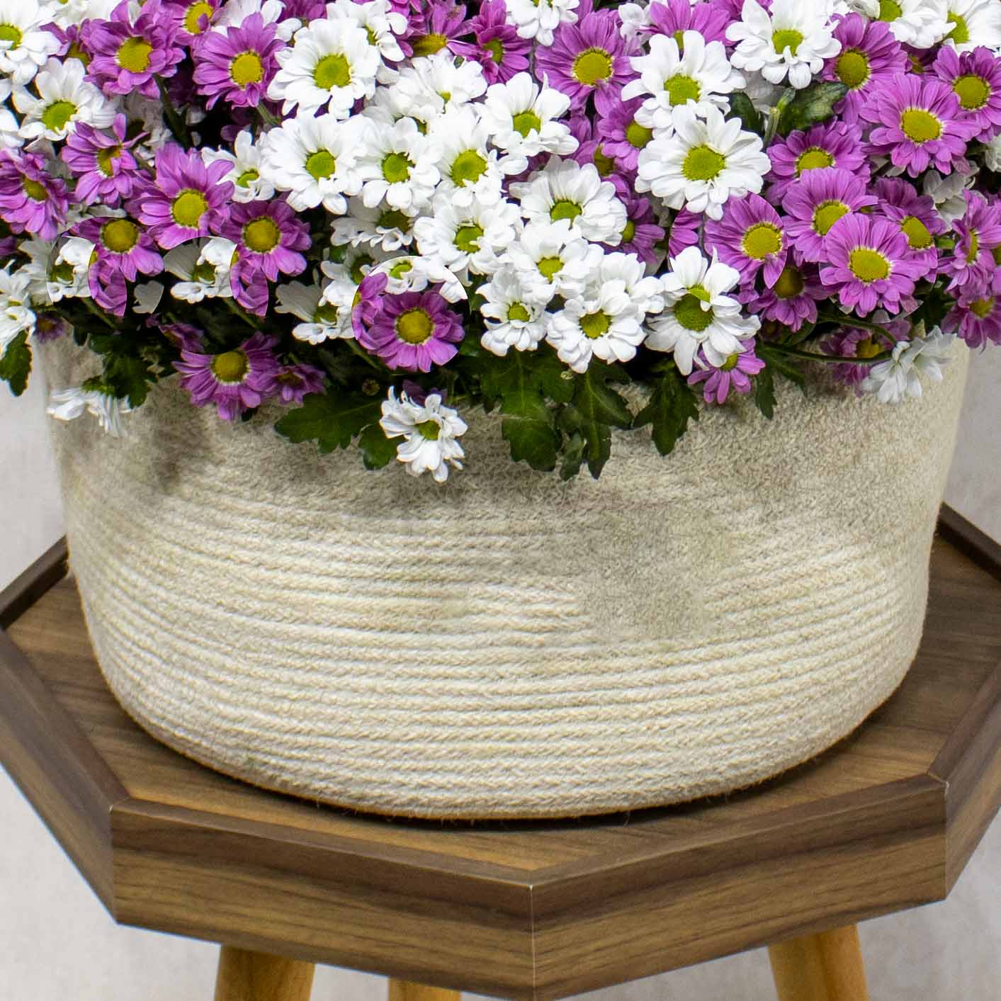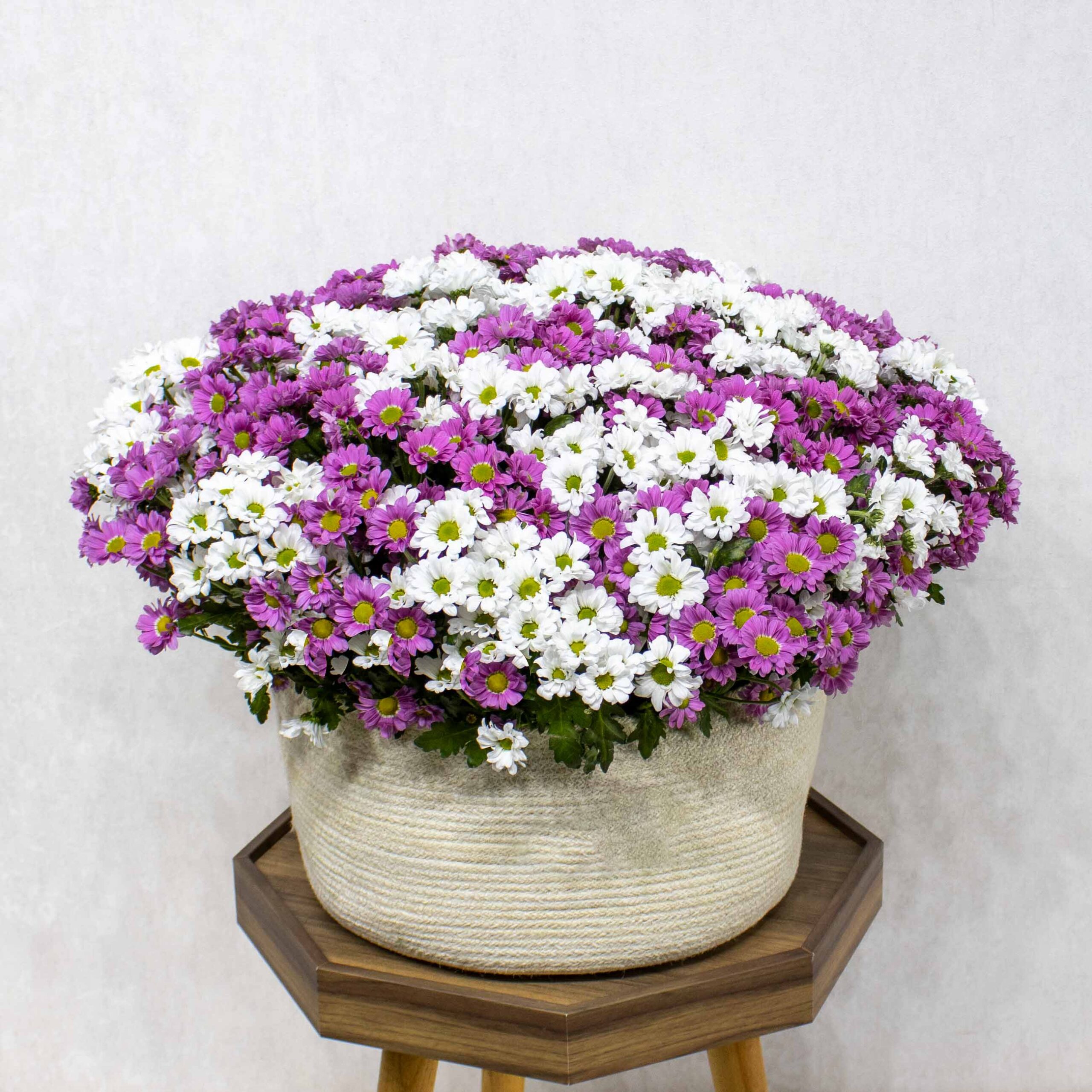 This bouquet contains White & Pink Chrysanthemum arranged in a handmade vase.