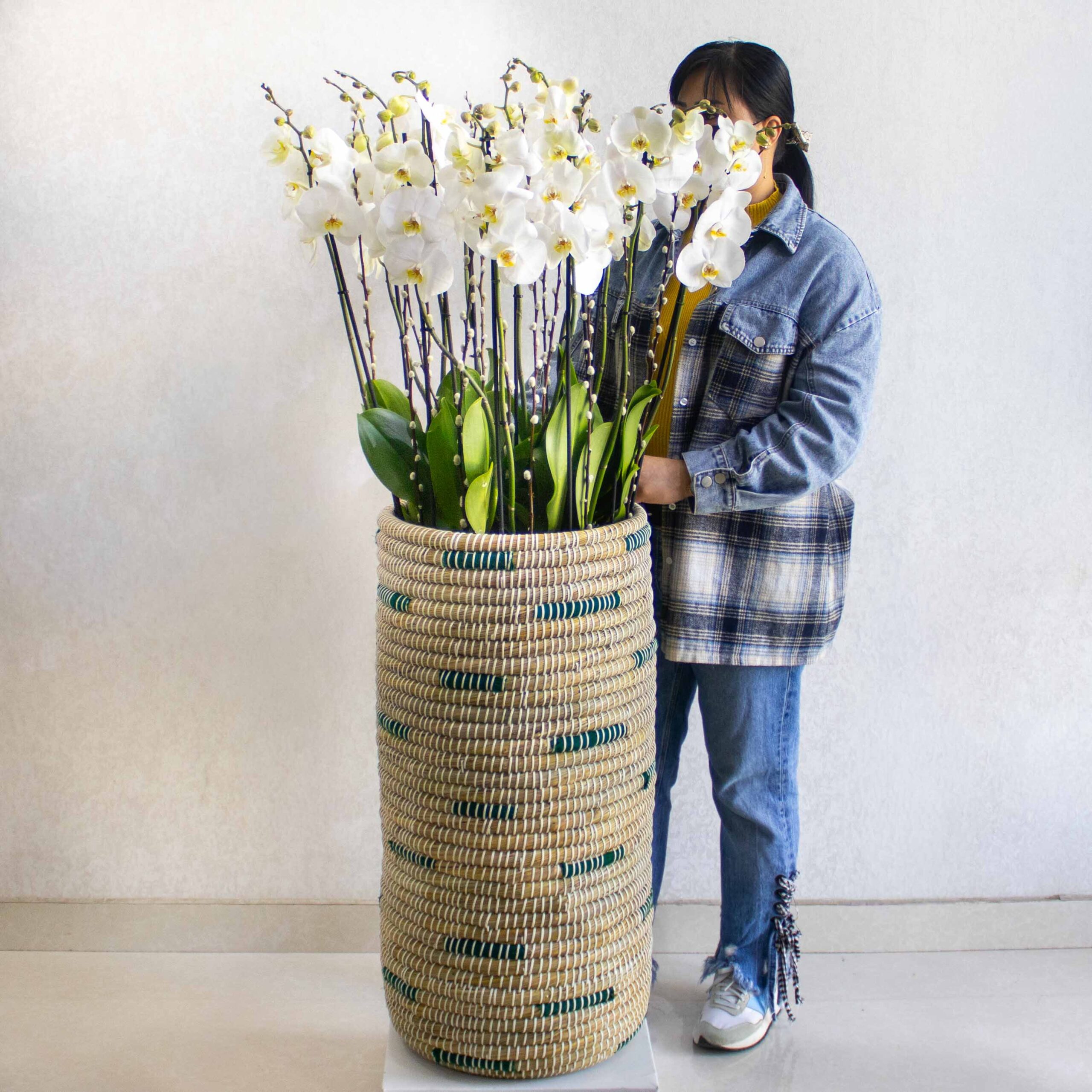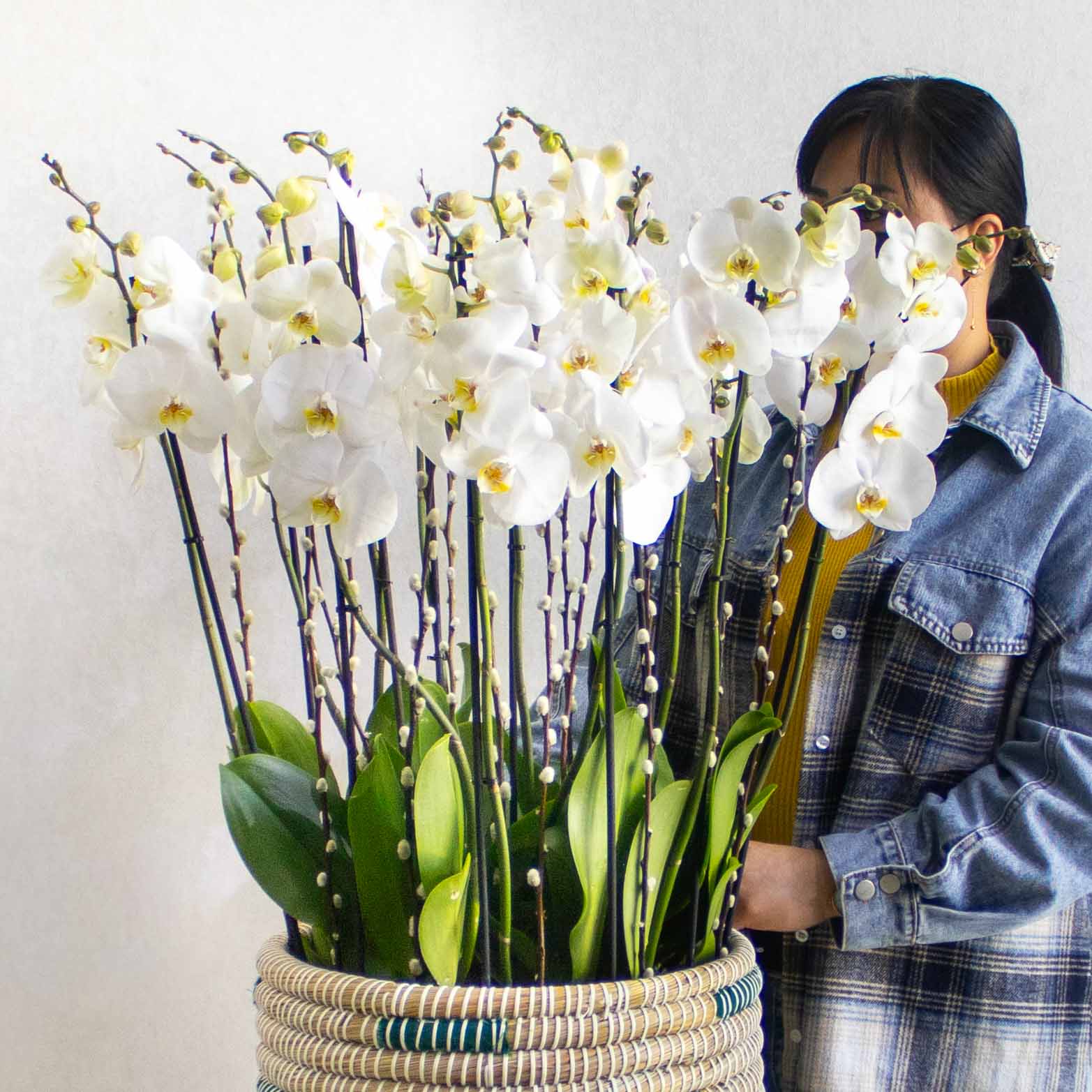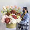 This bouquet contain white orchids beautifully arranged in high vase.