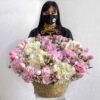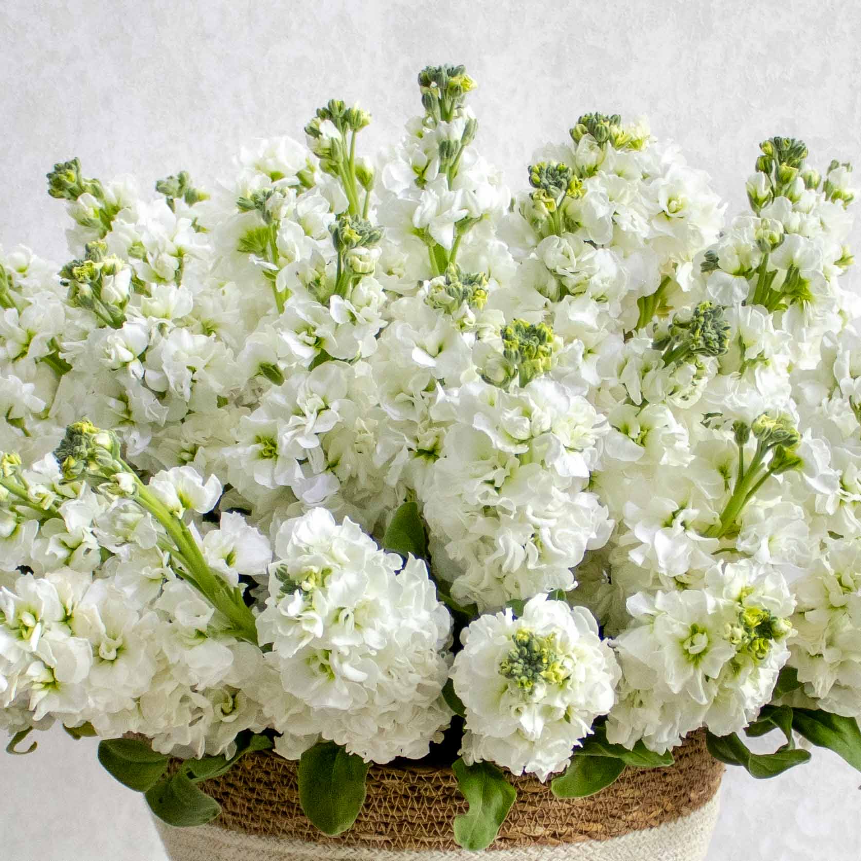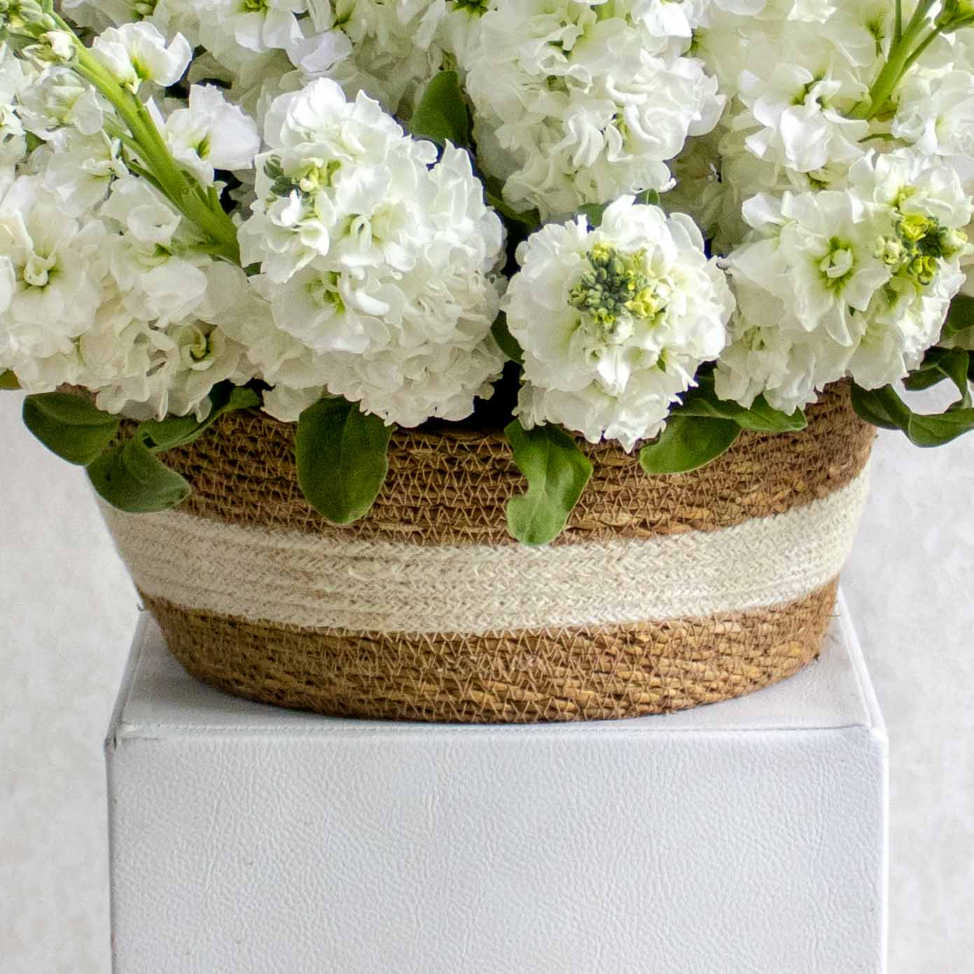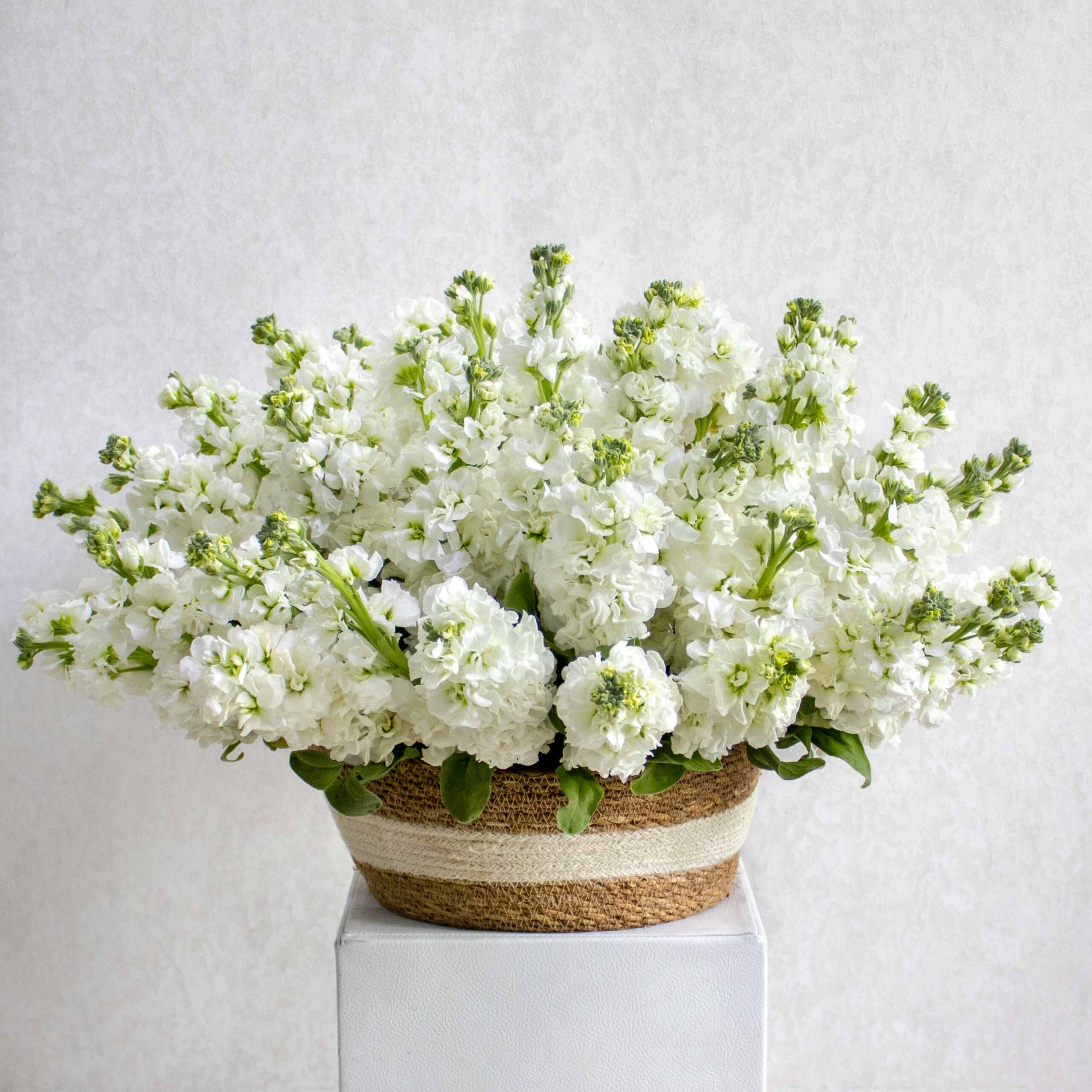 This bouquet contains white matthiola beautifuly arranged in handmade vase