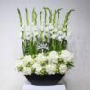 Yellow red lip orchid plants arranged in a Chinese pot.